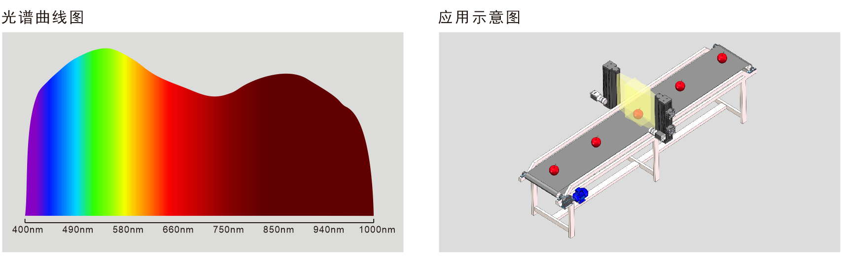 全光譜線光源是一款可替代鹵素光源,能夠發出從400nm-1000nm完整光譜的線光源。搭配高光譜/多光譜線掃相機使用,能使相機成像技術具有獨特的獲取信息和識別特征能力,可以同時獲取目標的空間和光譜信息。